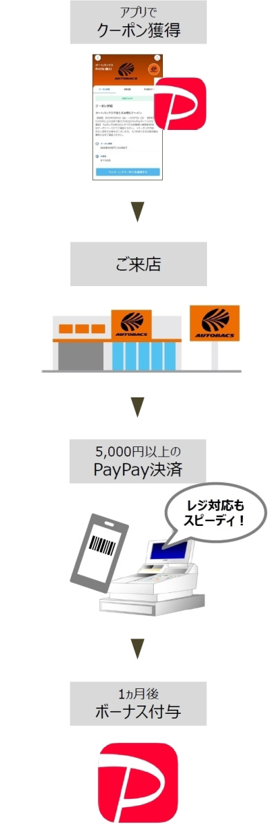1期間につき5回まで!PayPayアプリでのお支払いでポイント還元!税込5,000円以上をPayPayでお支払いなら最大5%PayPayポイントが戻ってくるお得なクーポンキャンペーンを、オートバックスで2026年2月1日(日)から2026年3月31日(火)まで実施します。